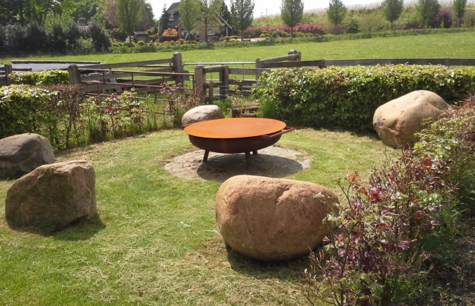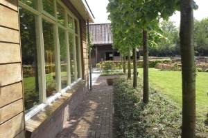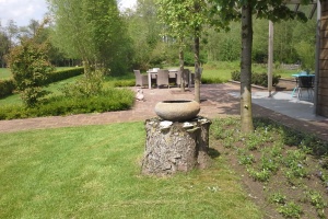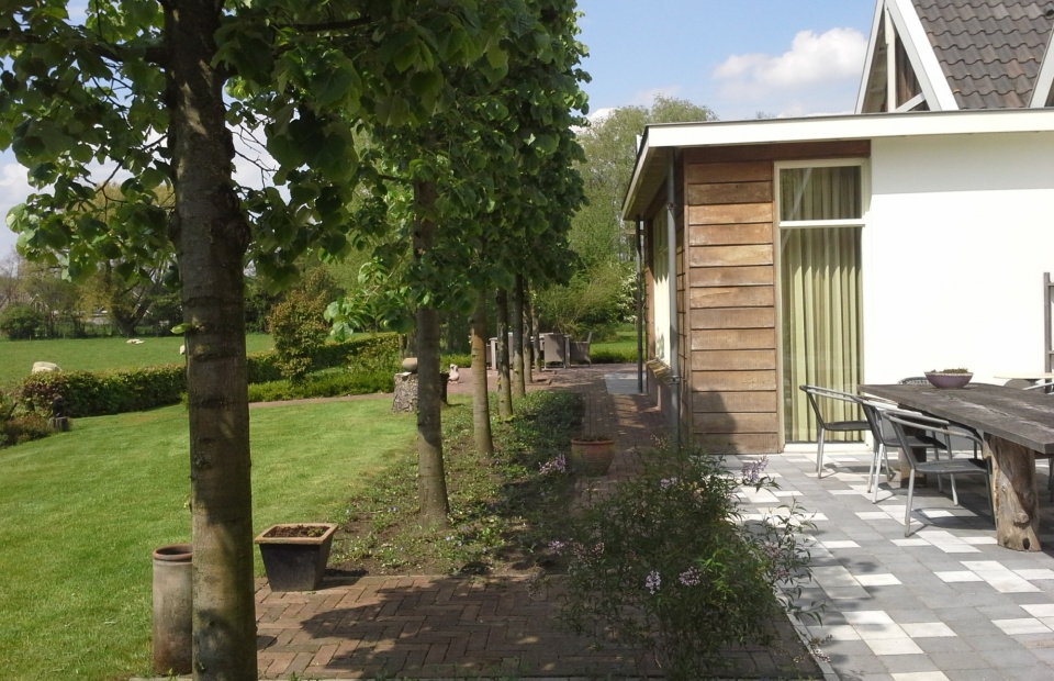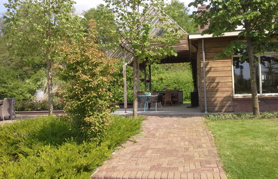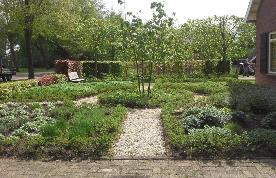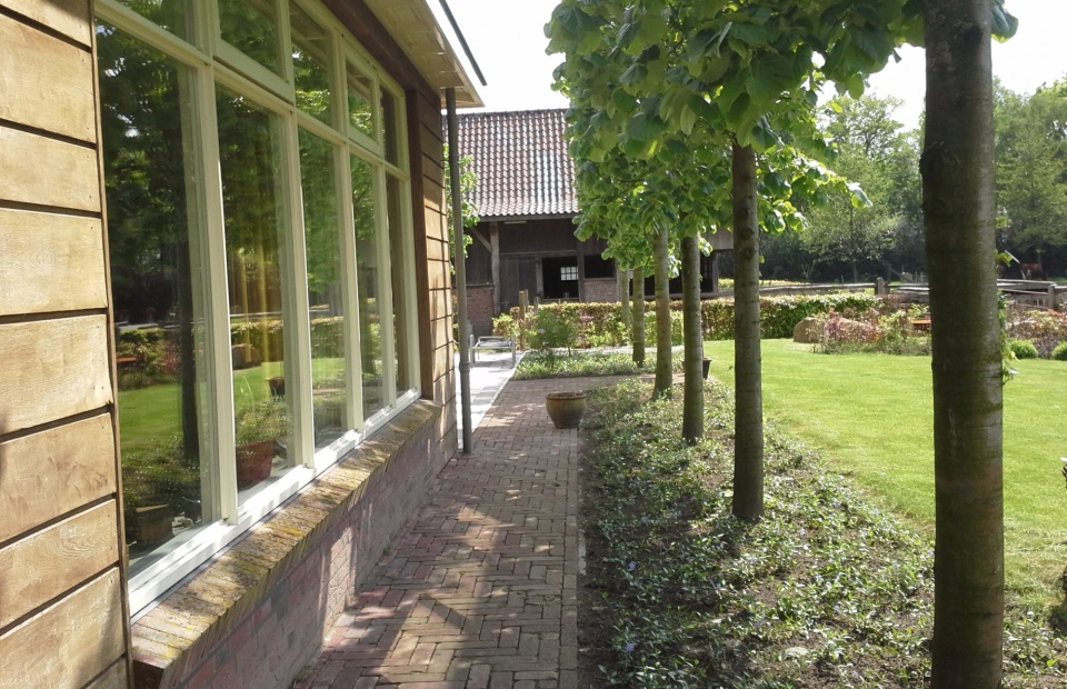 In goed overleg met de eigenaar werd de gehele tuin plus een gedeelte van de aanpalende weilanden opnieuw ingericht. Met deze rigoureuze renovatie is Oswald Hovenier erin geslaagd een ratjetoe van stijlen om te toveren tot een harmonieus geheel, in stijl met de gebouwde omgeving. De tuin biedt nu een prachtig uitzicht, niet in de laatste plaats dankzij de nieuw geplante grote lindes.