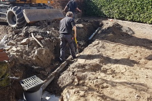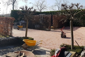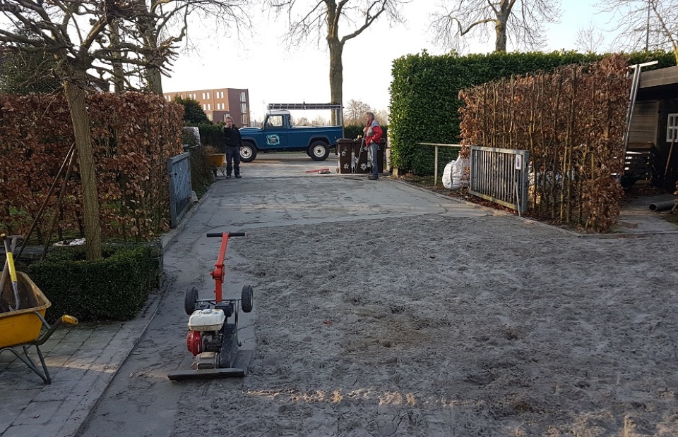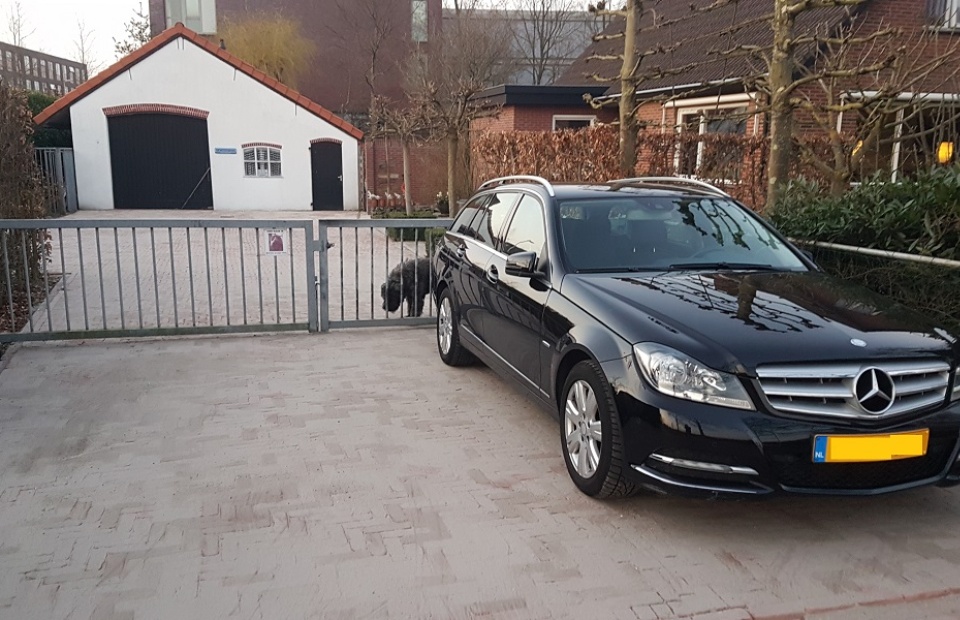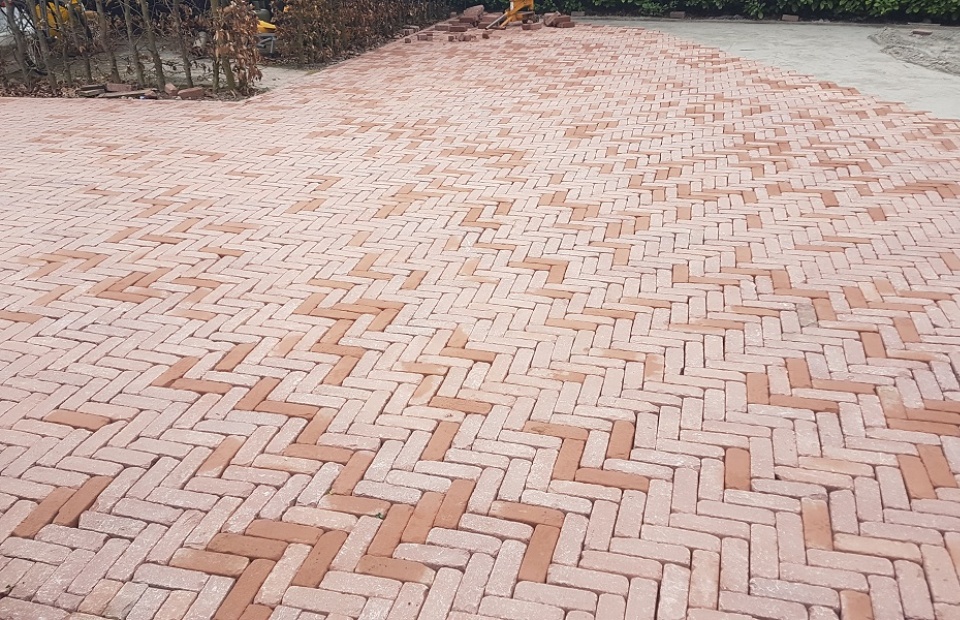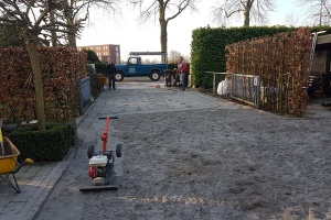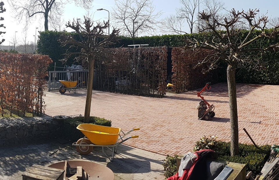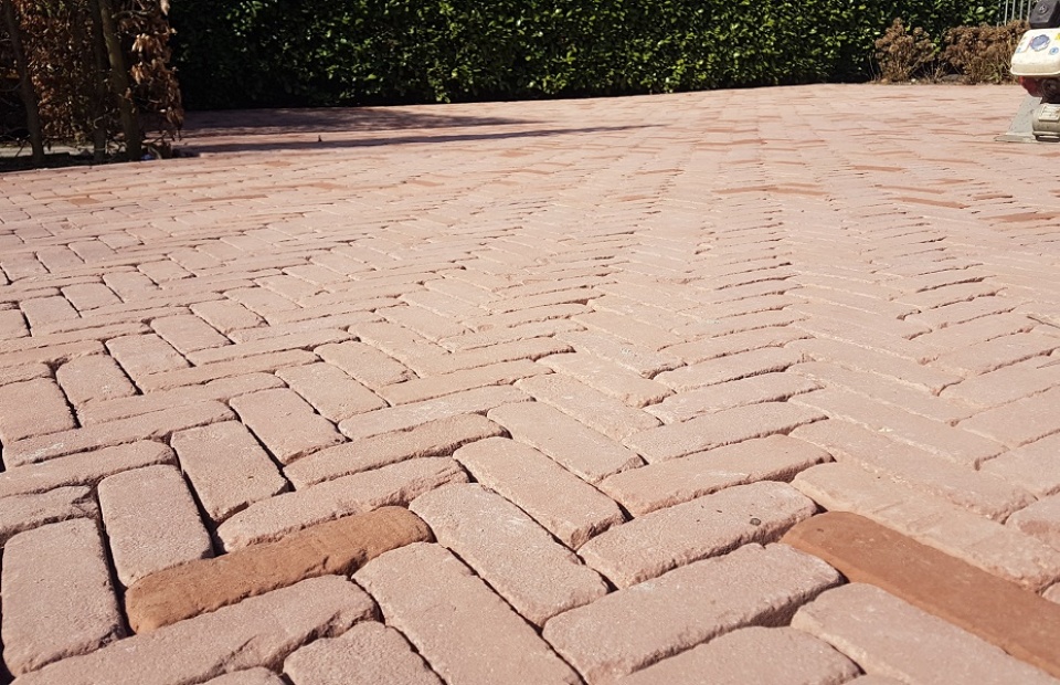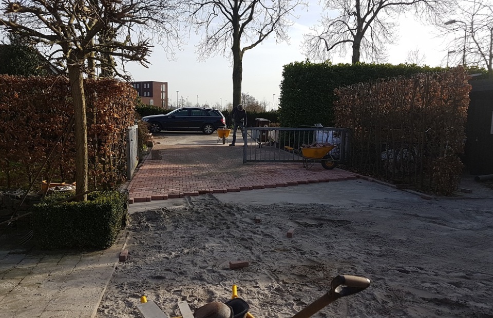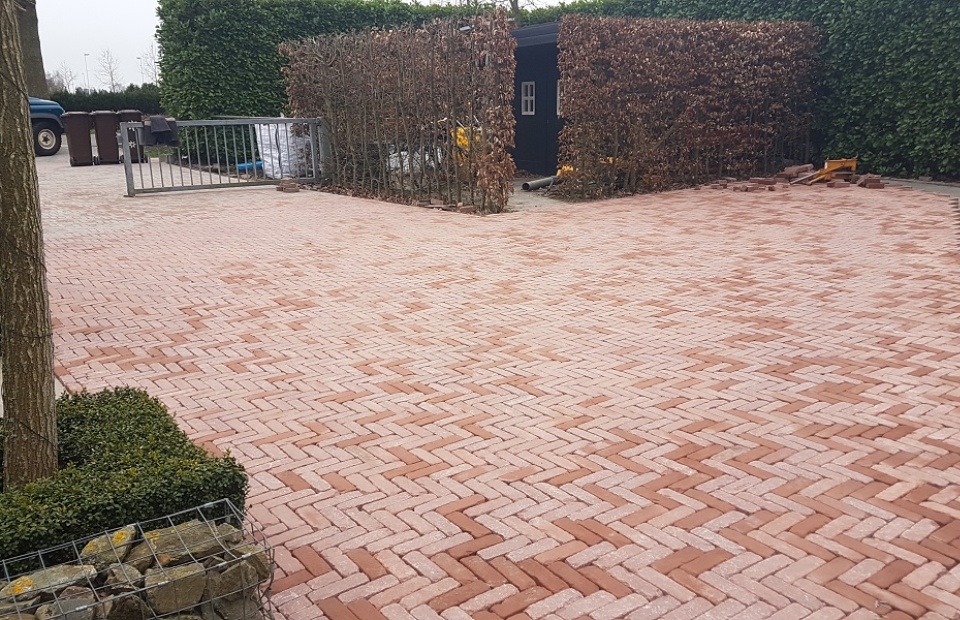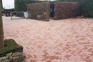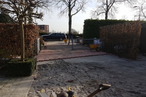 Het grind van een oprit van ruim 200 vierkante meter is door Oswald Hovenier vervangen door een bestrating van gebakken klinkers, die werden gelegd in elleboogverband. Ook is een nieuwe kolk aangesloten op de bestaande afvoer. Ondanks het regelmatig afwijkende formaat van de klinkers kon een strak eindresultaat worden geboekt.<<< Terug naar alle referenties