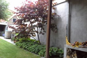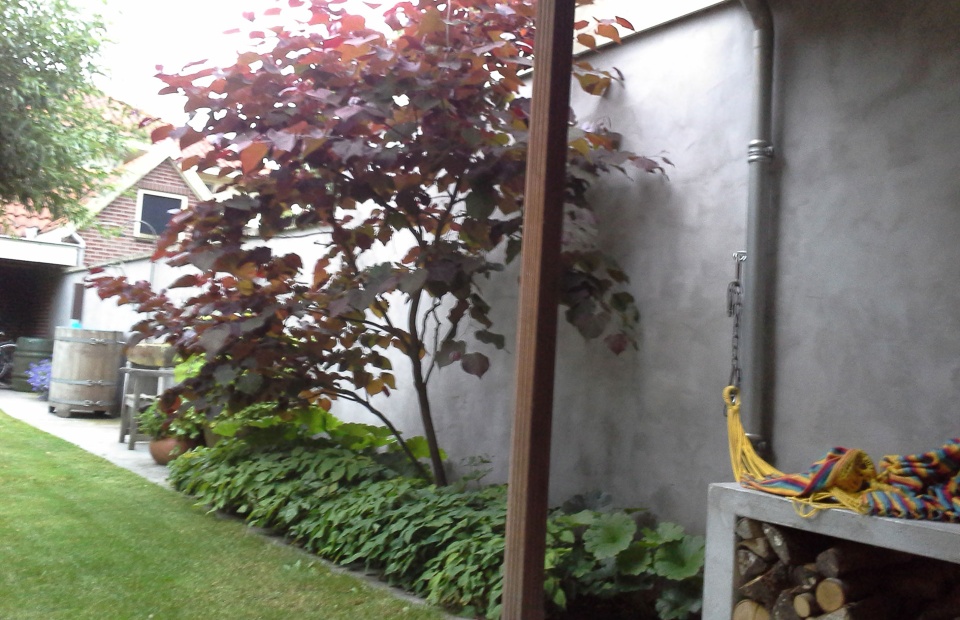 Aan de achterzijde van deze woning is een intieme tuin aangelegd, waarvan met name de strakke zichtlijnen, het gebruik van robuust materiaal en de veranda in het oog springende elementen zijn.<<< Terug naar alle referenties