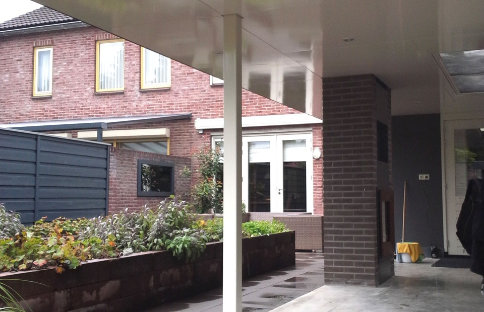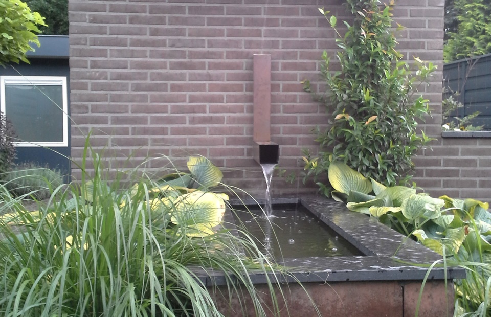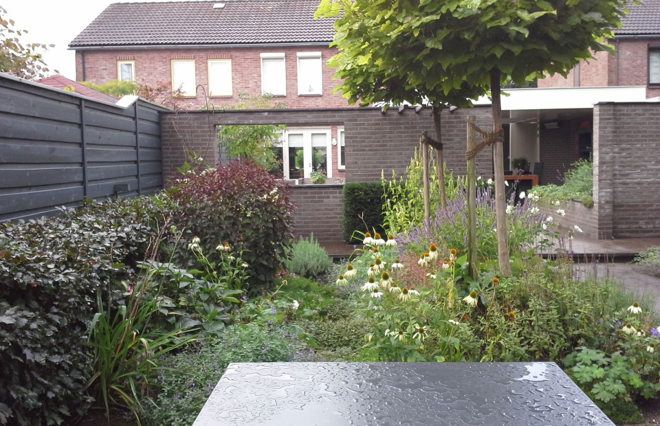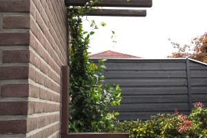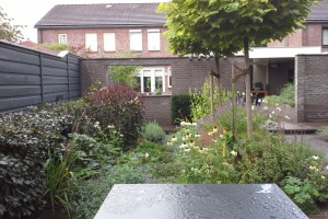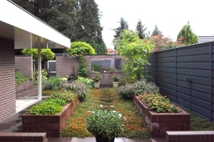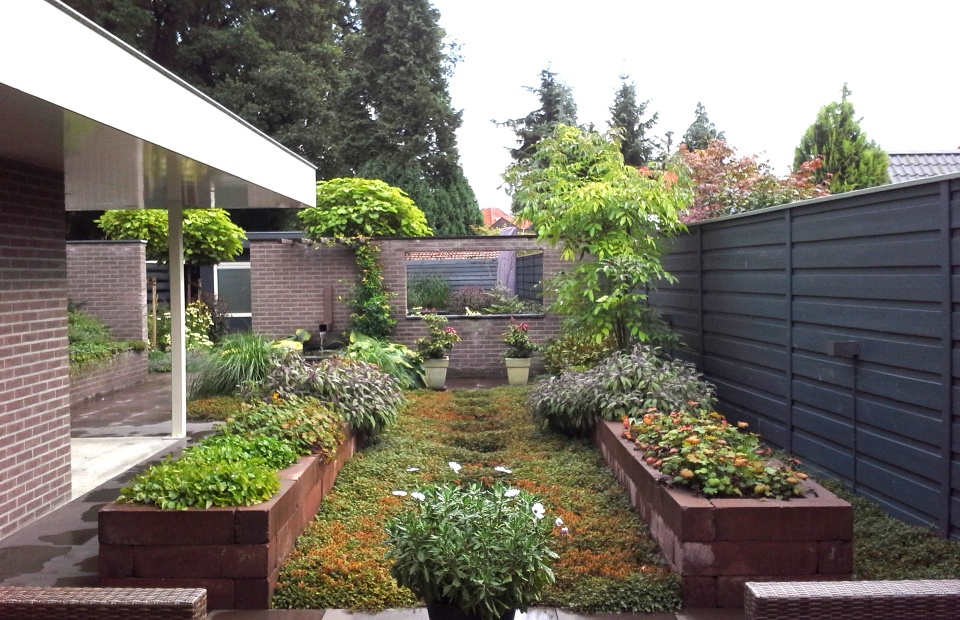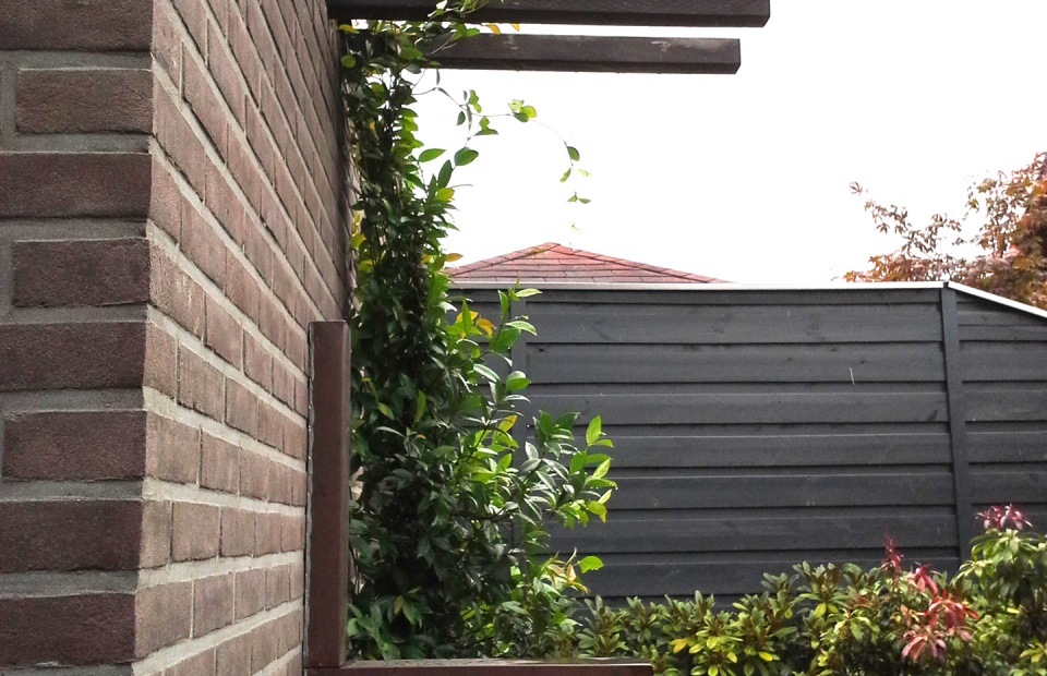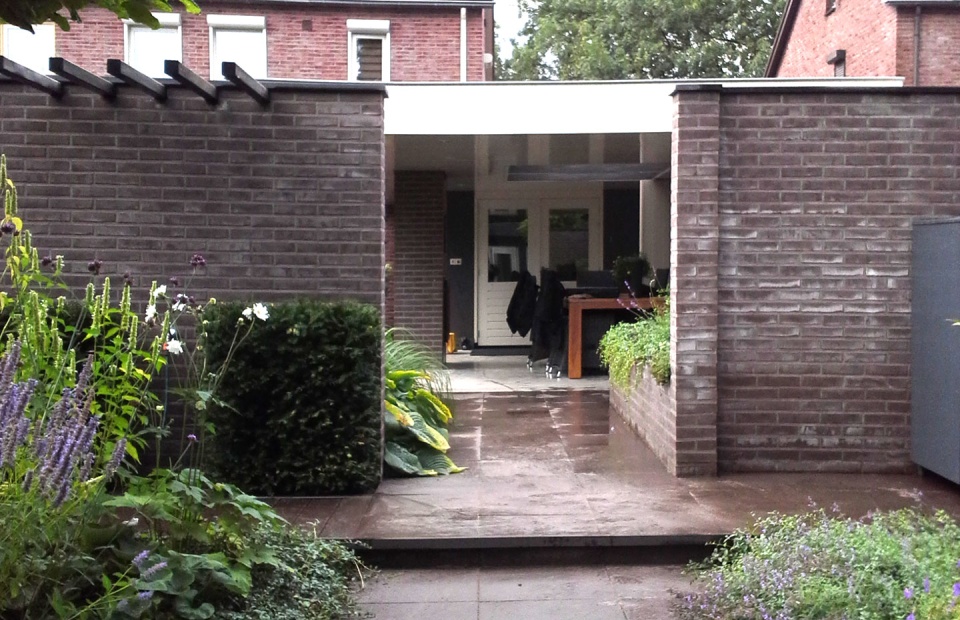 Aan de Edisonstraat is een bijzonder project verwezenlijkt, waarbij de tuin met behulp van een stenen scheidingsmuur in twee delen is onderverdeeld. Een venster in de muur geeft een blik op het tegenovergelegen deel van de tuin, als ware het een spiegel of schilderij. De tuin heeft daardoor beduidend aan belevingswaarde gewonnen. In de veranda is een openhaard aangelegd, zodat het hier ook bij kouder weer prettig toeven is.<<< Terug naar alle referenties